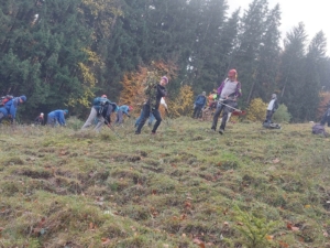 Beim Abwährtsgehn wurde dann am „Bahnhof“ noch etwas nachgearbeitet, bevor alle Helfer am frühen Nachmittag wieder zurück am Parkplatz der Geigelsteinbahn eintrafen.