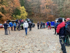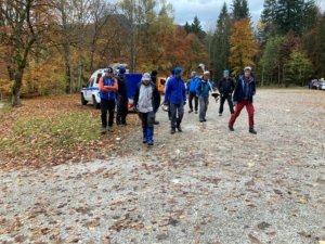Die Überraschung und Freude war groß, als immer mehr Freiwillige morgens um neun Uhr mit Sägen, Äxten, Zwickern und Motorsägen auf dem Geigelsteinparkplatz eintrudelten. Aus Schleching, aus dem Achental und dem Chiemgau trafen die Helfer und Helferinnen ein. Die am weitesten angereisten kamen aus Straubing. Gemeinderat Andi Hafner hatte seine ganze Familie zum Helfen aktiviert. Auf die Frage, was denn ihre Motivation sei, wurde geantwortet „wir sind hier an der frischen Luft“ oder „ich will mich bei der Abfahrt nicht im Brombeergestrüpp verfangen“.