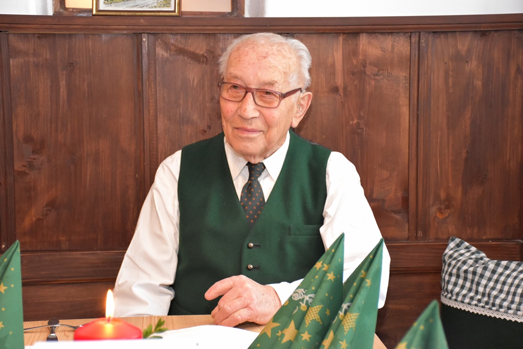 Schleching – Vor genau 90 Jahren wurde Karl Nusko am 16. Dezember im Böhmerwald, Kreis Prachatitz geboren. Dort begann er nach der Schule die Lehre zum Schreiner. Die Ausbildung konnte er an diesem Ort nicht zu Ende führen, da er als Soldat einberufen wurde. Erst nach dem Krieg 1947 hat er -inzwischen in Ingolstadt- die Gesellenprüfung abgelegt. Auf einer alten Postkarte von Prachatitz konnte sich Karl Nusko heute genau an den Platz erinnern und zeigen, wo er seine Lehre begann. Auch die Erinnerungen an den zweiten Weltkrieg waren ihm noch ganz präsent, wie er zum Arbeitseinsatz nach Niederbayern kam und in München stationiert war Dort konnte er sich mit seinem Vater treffen, der auf Kurzurlaub vom Russlandeinsatz war. Von den vier Geschwistern lebt noch ein Bruder in München. Seine Schwester Anna wäre in diesem Jahr 100 Jahre alt geworden.