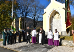 Schleching – Passend zum Ende des Kirchenjahres und des Volkstrauertages stimmte die Musikkapelle Schleching unter Leitung von Walter Reisenauer tongewaltig die Deutschen Messgesänge von Michael Haydn an. In der Pfarrkirche standen die Fahnenabordnungen am Altar und Pfarrer Peter Bergmaier forderte die zahlreichen Besucher zum Denken und Nachdenken an diesem Tag auf. Die Frage „welchen Sinn geben…
