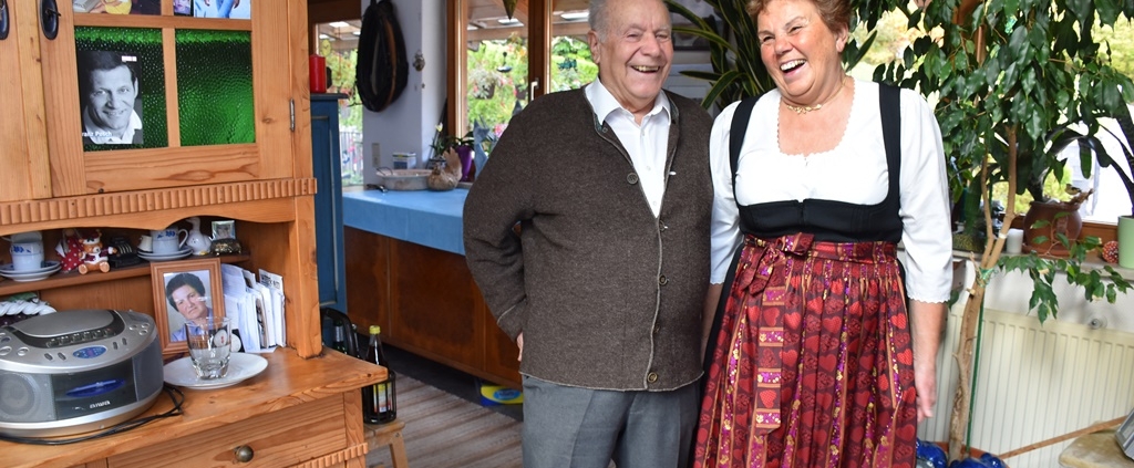 Josef Loferer kam am Vormittag vorbei zum Gratulieren und es wurde über alte Zeiten geplaudert. Gefeiert wird der 50. Hochzeitstag mit der ganzen Familie im Berggasthof Streichen, genau dort, wo sie sich vor 50 Jahren kennengelernt haben. wun
