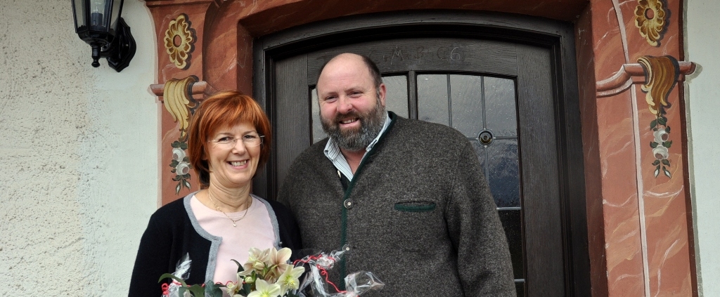 Schleching – Bürgermeister Josef Loferer bedankte sich mit einem Blumenpräsent bei Heidi Stadler für die Beetpflege am Haus des Gastes. Seit 2006 war Heidi Stadler für die Pflege mit ihren Helferinnen und Helfern verantwortlich im Rahmen des Verkehrsvereins.