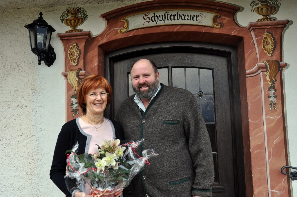 Schleching – Bürgermeister Josef Loferer bedankte sich mit einem Blumenpräsent bei Heidi Stadler für die Beetpflege am Haus des Gastes. Seit 2006 war Heidi Stadler für die Pflege mit ihren Helferinnen und Helfern verantwortlich im Rahmen des Verkehrsvereins.