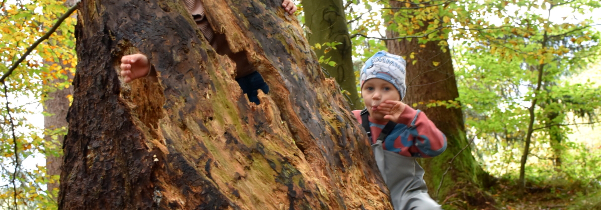 Bild 7065 + 68 die Kinder im „Zauberwald“ lassen ihrer Fantasie freien Lauf bei den gefällten Bäumen, hier wurden gerade „Käsespätzle gekocht“