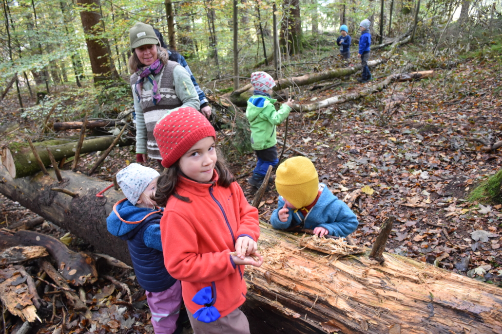 Die Kinder haben mit Interesse alles verfolgt und konnten lernen, dass die notwendigen Arbeiten normale Abläufe in der Natur sind, wie die Leiterin des Waldkindergartens, Irmi Klauser, berichtet. Die Bäume sind vielen widrigen Umständen ausgesetzt, an erster Stelle sicher dem Klimawandel, aber auch Stürme, Schädlinge, Dauerregen oder Schneebruch setzen den Bäumen zu. Irmi Klauser zeigte den Kindern, dass da wo Bäume gefällt werden mussten, die anderen jüngeren Bäume nun mehr Licht bekommen und besser wachsen können oder auch etwas Neues entstehen kann. Die Kinder haben ganz kreativ auf die neuen Umstände reagiert, da wurde aus den alten Ästen ein neuer Unterschlupf gebaut oder sie wurden als „Harvester“ umfunktioniert. Die nun auf der Erde liegenden Baumstämme eignen sich auch perfekt für neue Klettermöglichkeiten sowie eine Vielzahl an weiteren Ideen.