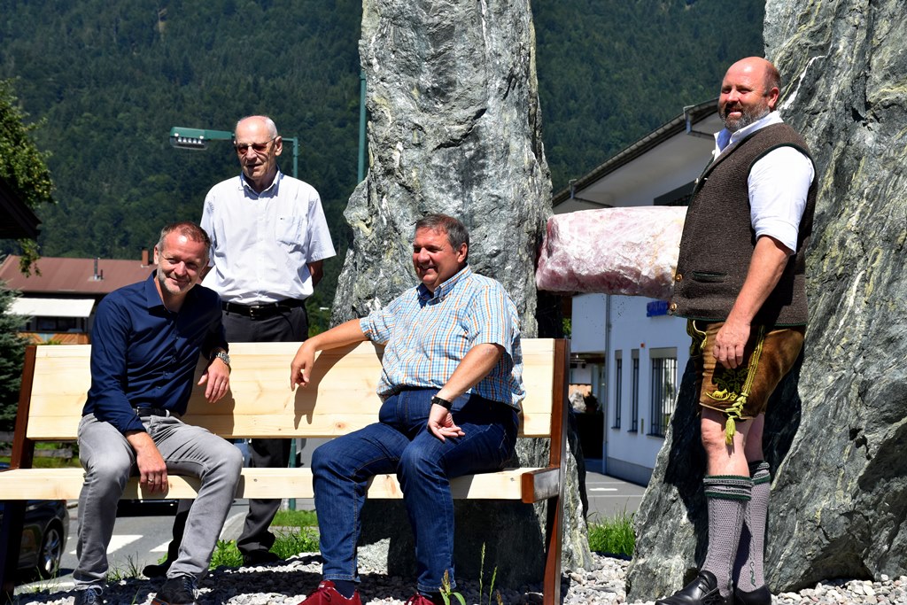 Symbolisch haben der Obmann des TVB Kaiserwinkel Gerd Erharter, Walter J. Mayr, Reinhold Flörl und Josef Loferer am Kreisverkehr in Kössen neben der Steinskulptur, die die Klobensteinschlucht darstellen soll, den Spaten in die Hand genommen und den ersten Stich gemacht. wun
