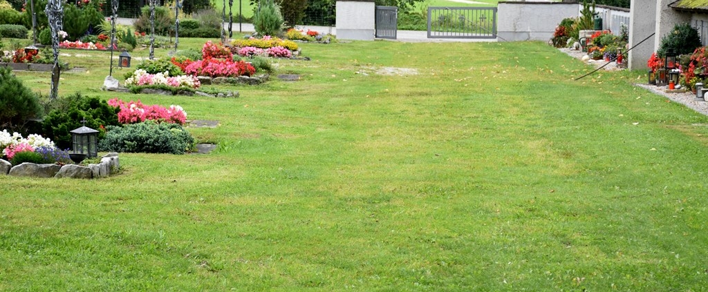 Inzwischen sprießt nun der Rasen auch in den Zwischenwegen und der Friedhof hat einen grünen Anzug bekommen. Der Bauhof der Gemeinde hält den Rasen durch regelmäßigen Schnitt kurz und gut begehbar. Im Frühjahr werden die wenigen Stellen, an denen nachgesät werden muss, erneut bearbeitet. wun