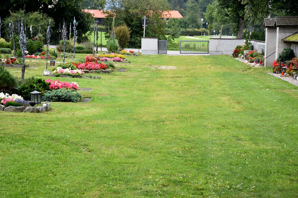 Inzwischen sprießt nun der Rasen auch in den Zwischenwegen und der Friedhof hat einen grünen Anzug bekommen. Der Bauhof der Gemeinde hält den Rasen durch regelmäßigen Schnitt kurz und gut begehbar. Im Frühjahr werden die wenigen Stellen, an denen nachgesät werden muss, erneut bearbeitet. wun