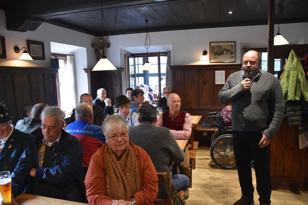 Bürgermeister Josef Loferer bei seinem Grußwort im Raitner Wirt mit Gästen