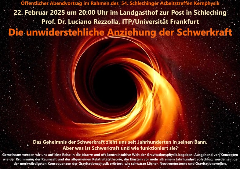 Öffentlicher Abendvortrag im Rahmen des 54. Schlechinger Arbeitstreffen Kernphysik. Prof. Dr. Luciano Rezzolla, ITP/Universität Frankfurt.