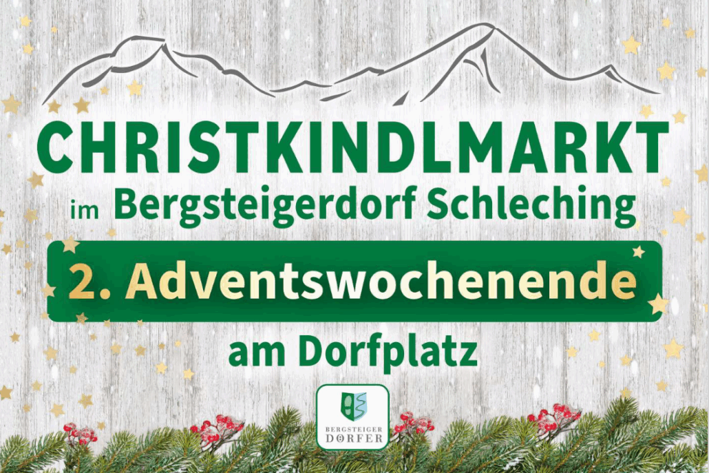 Den Christkindlmarkt zeichnet neben der alpenländischen Volkskunst besonders auch die Schlechinger Böllerschützen, die Schlechinger Alphornbläser, die Musikkapelle Schleching, die Schüler der Musikschule, Kinderprogramm mit der Bergwacht und den Schlechinger Murmeltieren, der Nikolaus mit Engeln auf der Pferdekutsche und die Krampei-Show der Geigelstoa Pass Schleching aus.