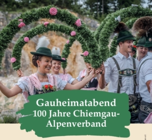 GAUFEST DES CHIEMGAU-ALPENVERBAND. Mit diesem Festabend begehen der Chiemgau-Alpenverband und der Festverein GTEV Marquartstein-Piesenhausen die Gaugründung vor 100 Jahren im Juli 1926 im Hofwirth zur Post in Marquartstein. Zu zahlreichen Darbietungen der Gaugruppe, der Gaujugendgruppe sowie Mitwirkenden des Festvereins spielt die Musikkapelle Marquartstein auf. Nach dem Programm geht es mit der ReDur Musi in der Bar noch zünftig weiter.