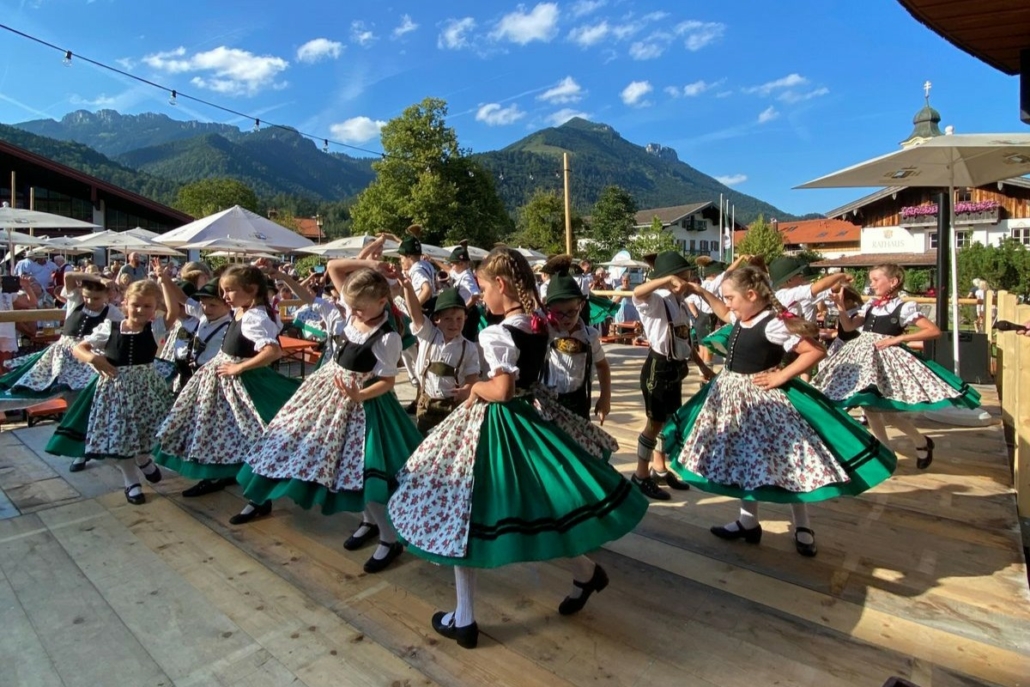 Sommernachtsfest auf dem Dorfplatz in Schleching mit der Musikkapelle Schleching, Trachtentänzen und Schuhplattler ,Sommernachtsfeuer.