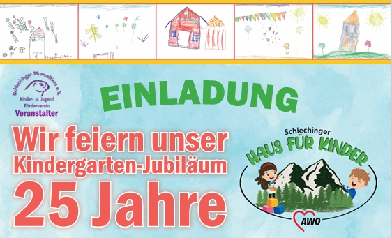 Eröffnung durch AWO (Träger), Bürgermeister Loferer und Murmeltiere (Vorstand Mary Neßler)-anschließend Segnung des Hauses und der Kinder durch die Pfarrer Buntes Programm der Kindergartenkinder Tag der offen Tür in den Räumlichkeiten des Kindergartens Vorstellung Vereinsarbeit Schlechinger Murmeltiere e.V.
