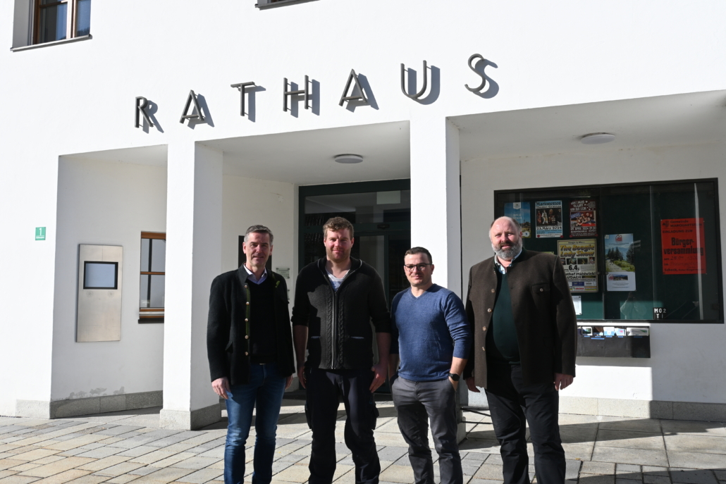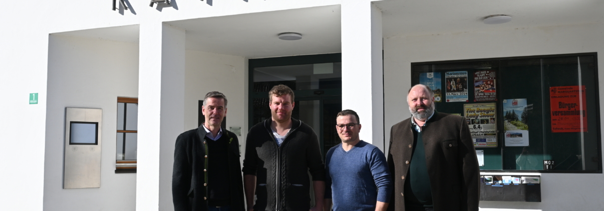 (Foto Gemeinde Marquartstein: v.l. Erster Bürgermeister (Marquartstein) Andreas Scheck, Peter Hell, Georg Hacher (Wassermeister Marquartstein), Erster Bürgermeister (Schleching) Sepp Loferer