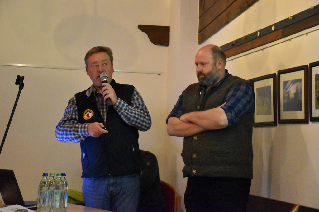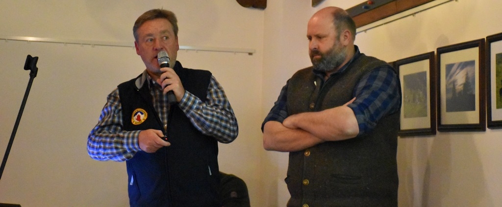 An seiner Seite stand der Leiter des Bayerischen Lawinenwarndienstes beim Landesamt für Umweltschutz (LfU) Hans Konetschny, der den erschreckten Bürgern seine fachliche Einschätzung zur aktuellen Situation gab. Zunächst erklärte er das Organigramm seiner Organisation, es gibt 33 Lawinenkommissionen (zirka 350 Ehrenamtliche), eine Lawinenwarnzentrale (6 Mitarbeiter) und Messstellen (zirka 50 Ehrenamtliche), alle Mitarbeiter sind zum Schutz der Bevölkerung eingesetzt, erklärte Konetschny. Zurzeit der Evakuierung bestand der Katastrophenfall, bei dem die Entscheidungen auf oberster Ebene vom Landratsamt getroffen werden, nicht mehr von der Gemeinde und in diesem Fall auch nicht von der Lawinenwarnzentrale.