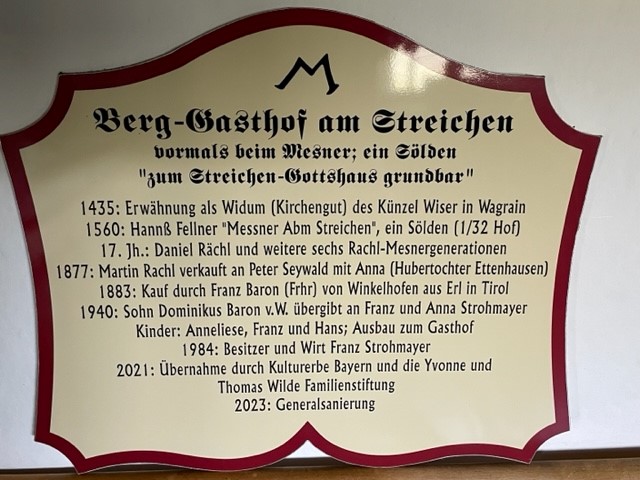 Schleching – 52 Zentimeter in der Breite und rund 44 Zentimeter in der Höhe. Einheitlich in einem beige Farbton auf wetterfesten Platten bedruckt und über das gesamte Gebiet unserer Gemeinde verstreut. Derzeit sind es 72 mit äußerster Akribie fein säuberlich beschriftete Schilder, die Einblick in die wechselhafte Geschichte des Dorfes. In Schleching, wo auch heute noch viele eingesessenen Familien im Dorf nicht mit dem offiziellen Nachnamen, sondern oft mit dem Namen ihres Hauses angesprochen werden, erzählen Tafeln vom Schicksal der historischen Gebäude und der Menschen, die im Laufe der Jahrhunderte dort ein Zuhause gefunden hatten und deren Nachfahren zum Teil auch heute noch dort leben. Zeugnisse einer bewegten Geschichte, die bis ins Jahr 1135 zurück geht, als die Ortschaft an der Tiroler Ache erstmals urkundlich erwähnt wurde.