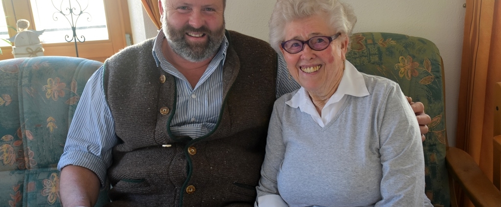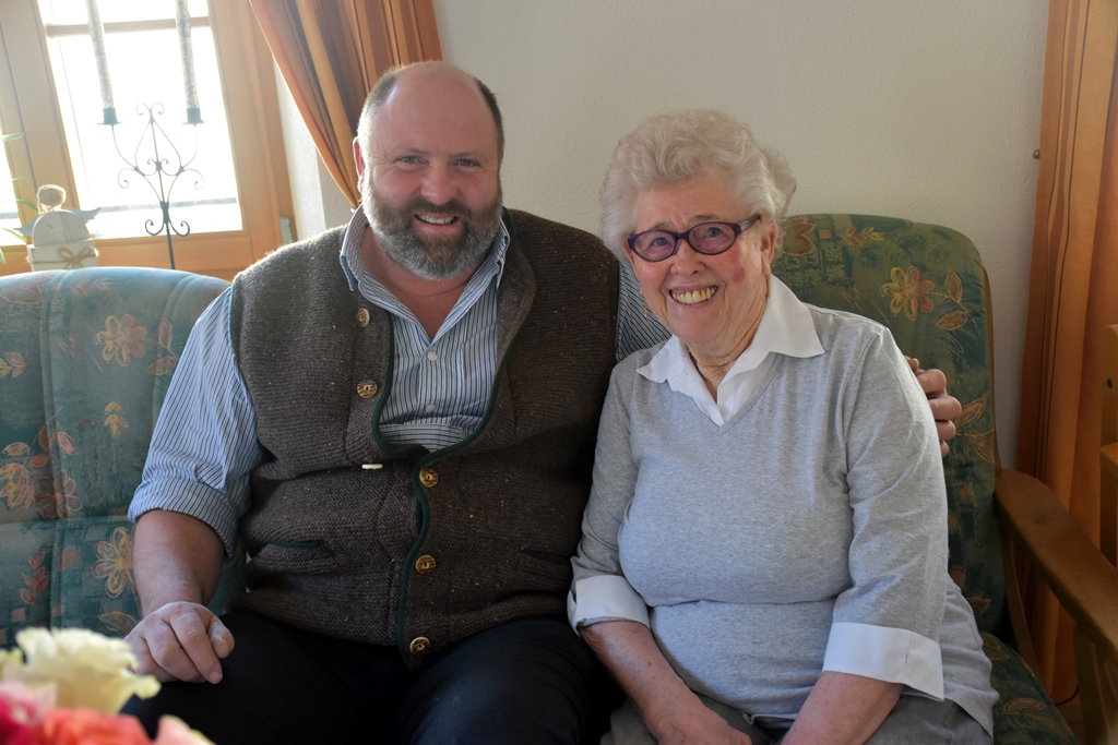 Die Jubilarin erzählt wie sie in ihrer Jugendzeit immer zu Fuß von Ettenhausen nach Unterwössen gelaufen ist, jede Woche ging es zum Tanzen dort. Dabei hat sie auch ihren Mann Rudi kennengelernt. 1954 haben die beiden den Bund der Ehe geschlossen und waren 61 Jahre verheiratet. Leider verstarb ihr Mann vor vier Jahren. Seit dem lebt sie als erste Bewohnerin im Projekt „Wohnen im Alter“ über dem Dorfladen in Schleching.