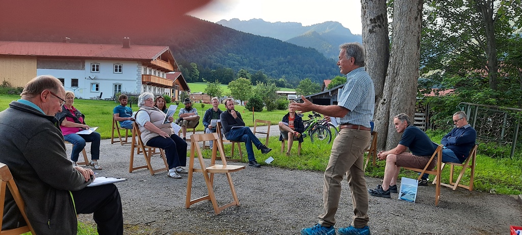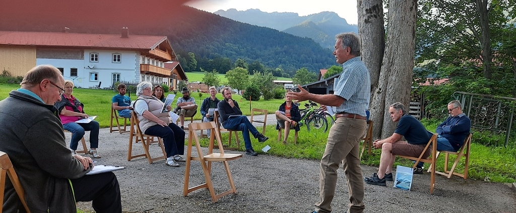 Schleching – Durch die Pflicht der Einhaltung von Abstands- Regeln in Corona-Zeiten wurde die Generalversammlung der Genossenschaft des Elektrizitätswerkes Schleching eG dieses Jahr im Freien abgehalten. Vorsitzender, Jakob Riedelsperger, freute sich, dass sich so viele Mitglieder auf dem Platz vor dem Alpbachwerk unter den großen Bäumen eingefunden hatten. Es gab Positives zu berichten: